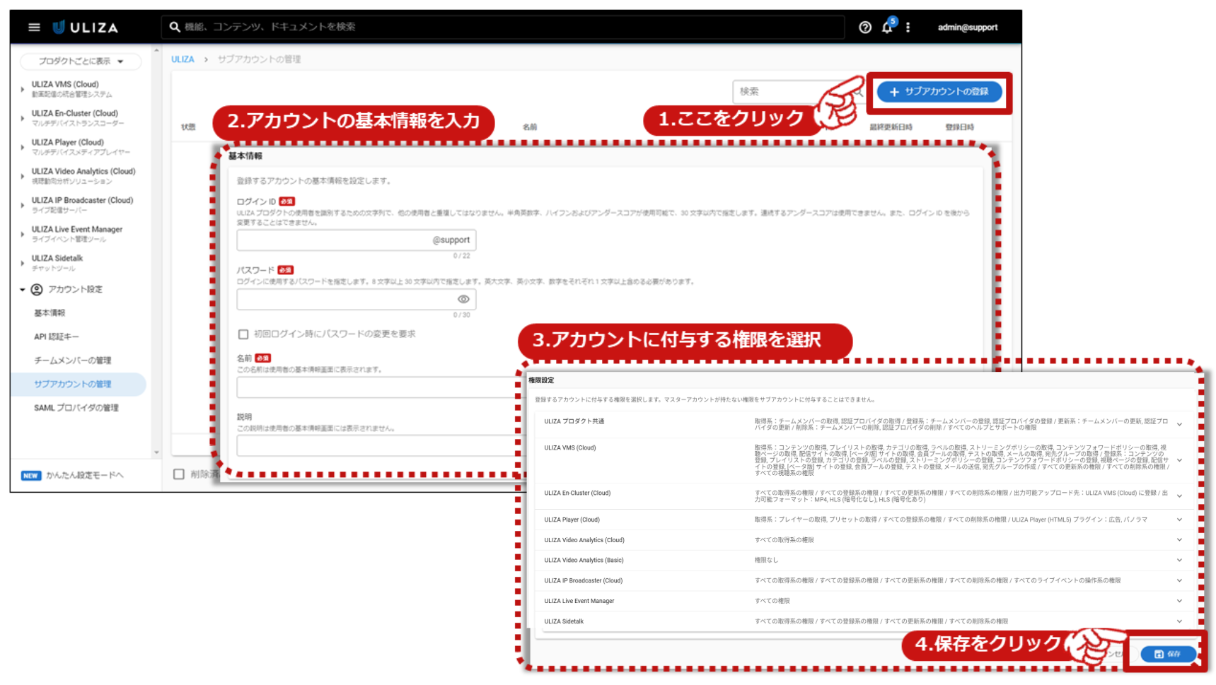 サブアカウントとは、当社から提供されるマスターアカウントの権限で任意に登録可能なULIZAを利用するためのアカウントを指します。