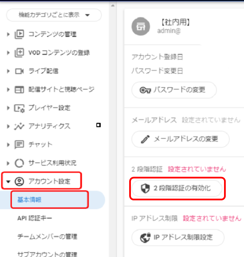 各サブアカウントやチームメンバーにおいても2段階認証を適用する場合、それぞれのアカウントでログインをし、2段階認証を設定する必要があります。