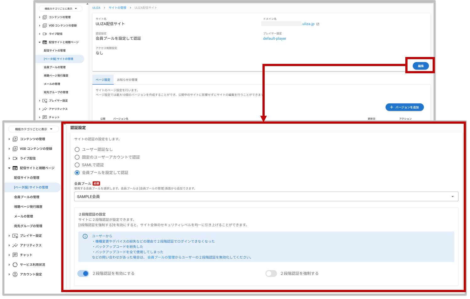 サイトの管理機能を利用いただく際に、視聴者の方がログイン時にID/パスワードの認証に加えて ワンタイムパスワードでの認証を実施することができるようになりました。