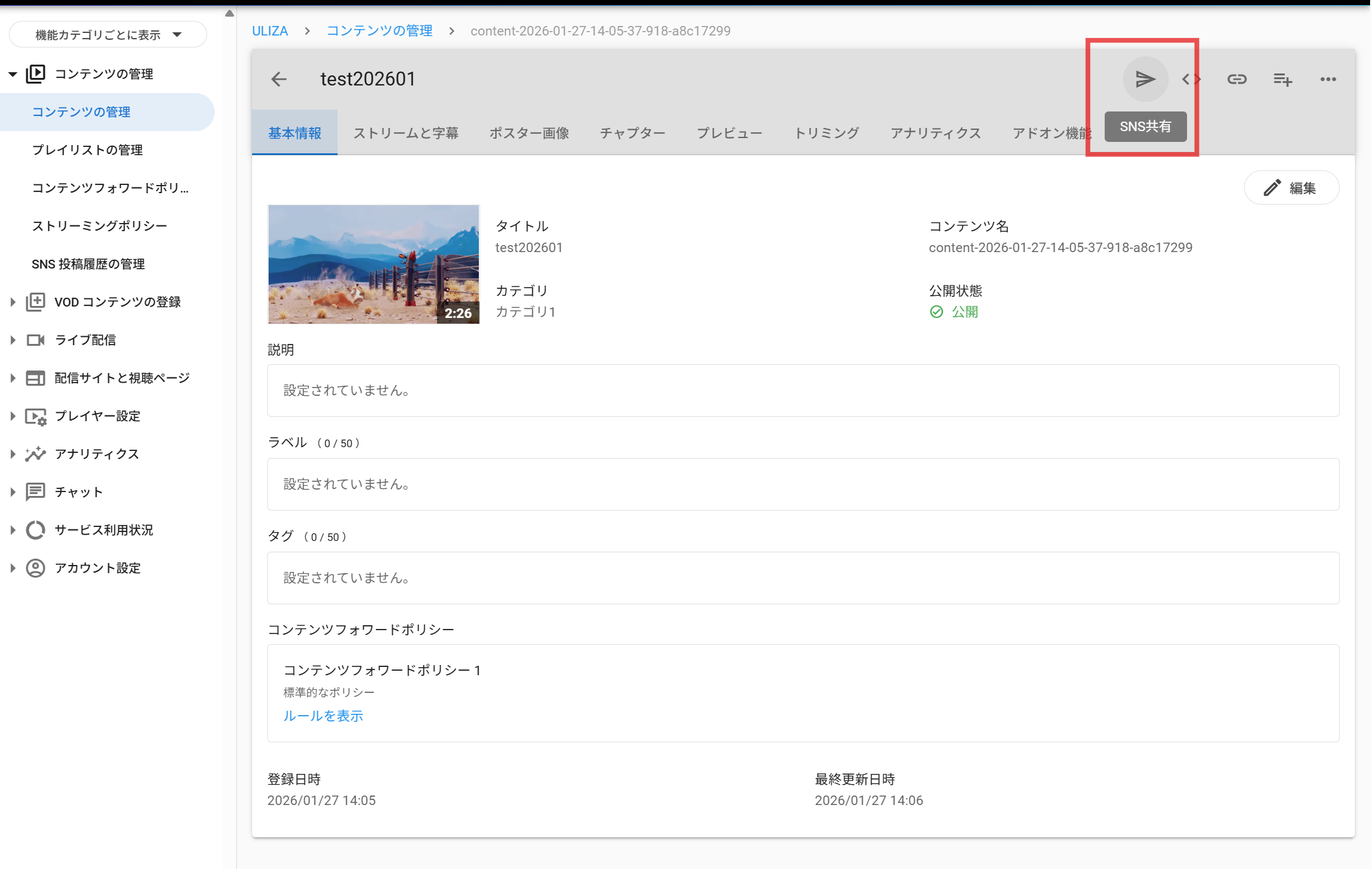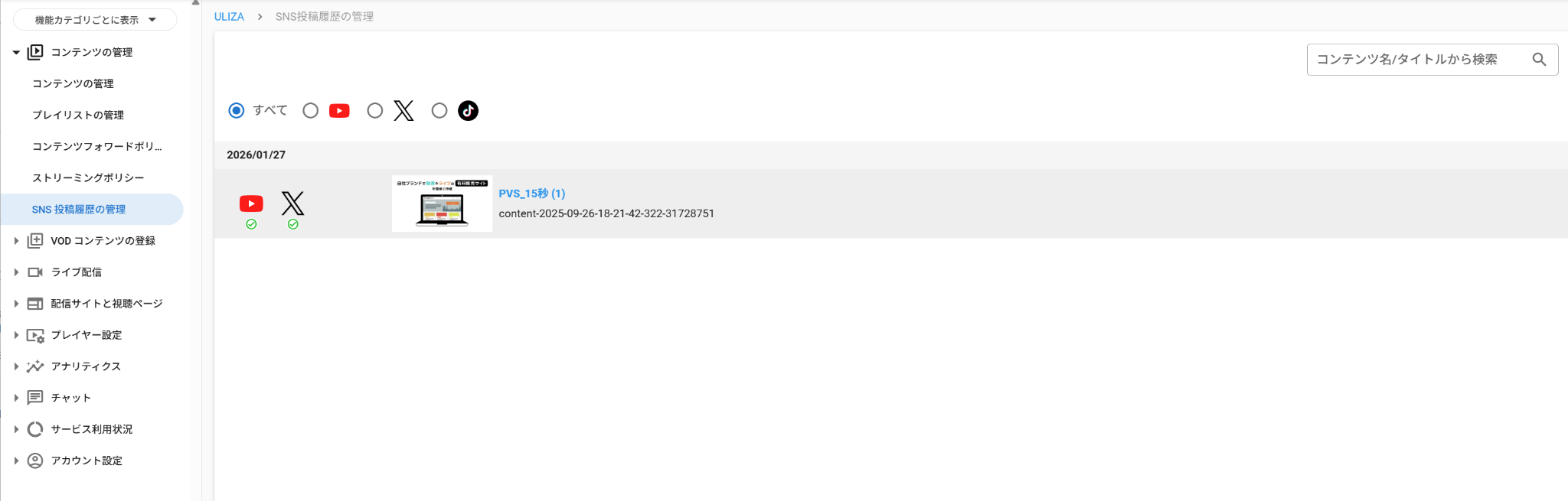 本機能により、動画管理をULIZAに集約し、各SNSへの投稿作業を一元化することが可能です。