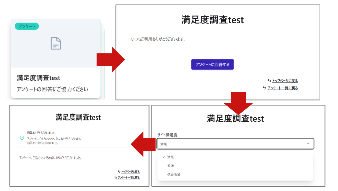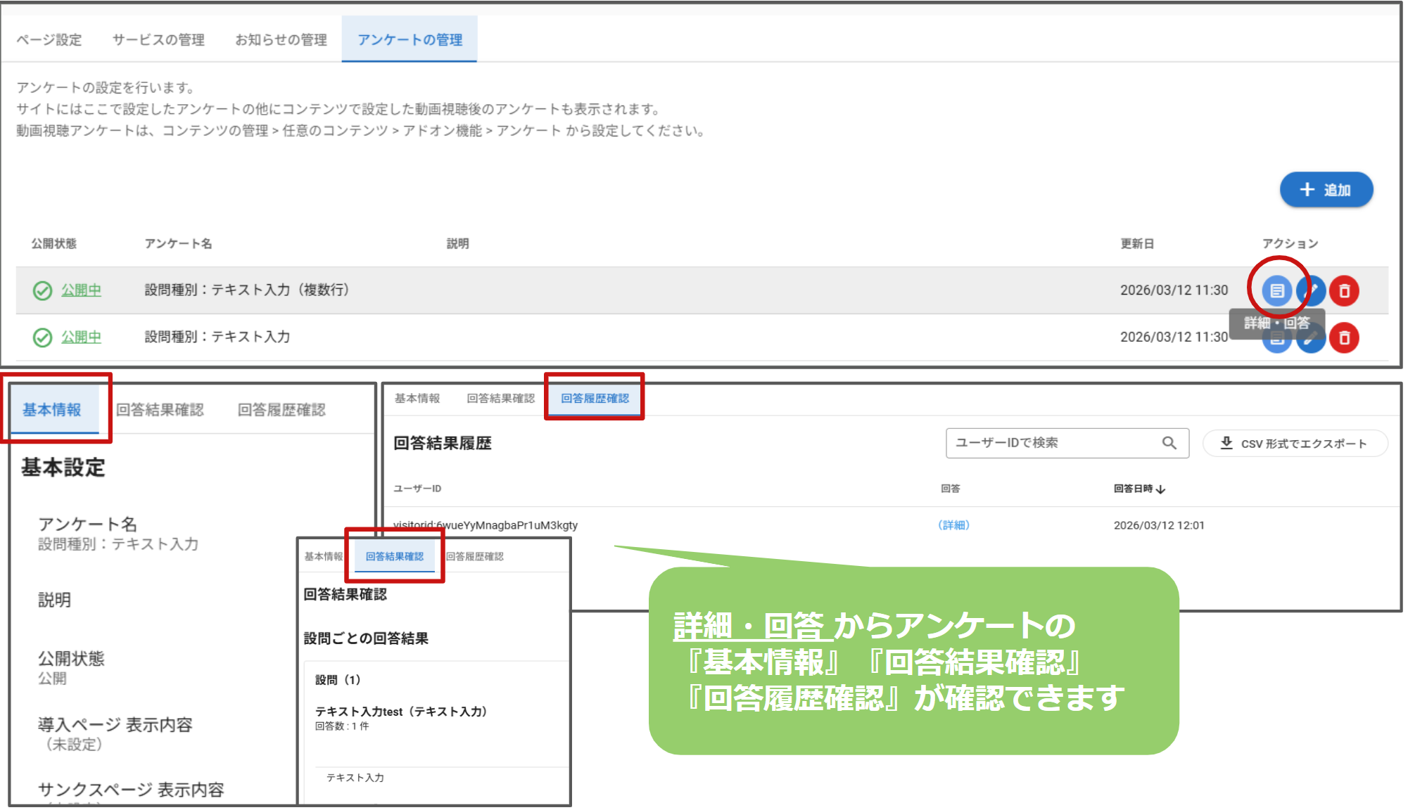 ①コンテンツにアンケートを紐づける場合の操作手順はこちら をご覧ください。
