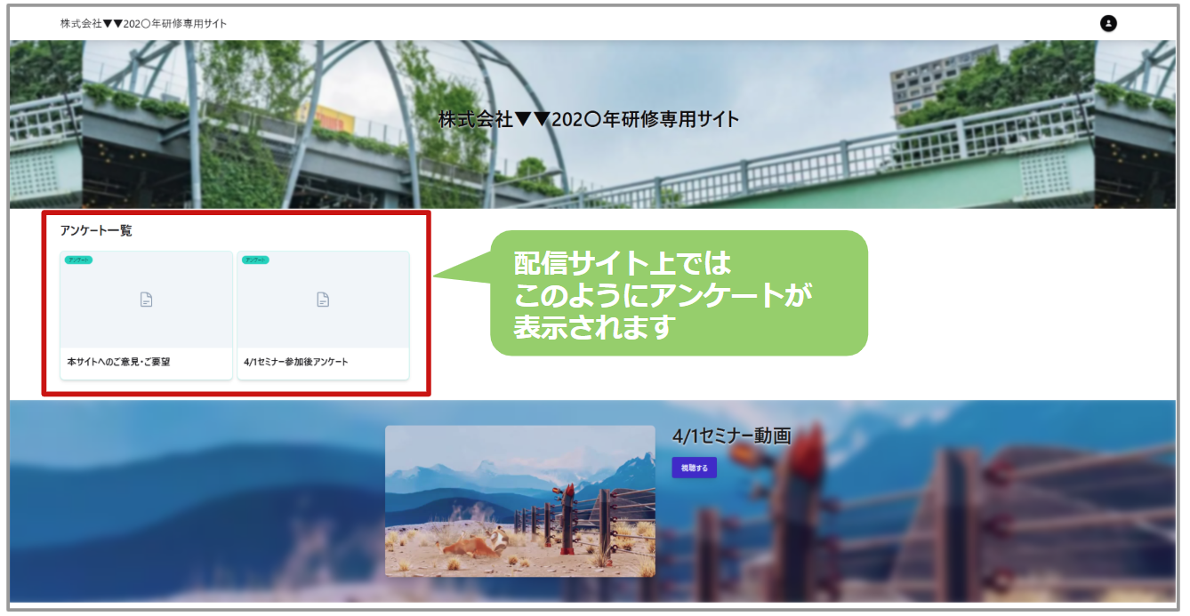 | すべてのアンケート | 動画の視聴の有無にかかわらず表示されます |