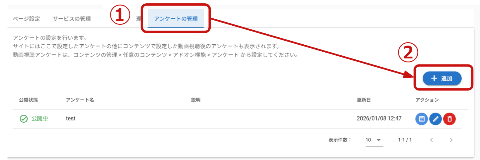 【手順1】アンケートの管理画面から新規アンケートを追加する