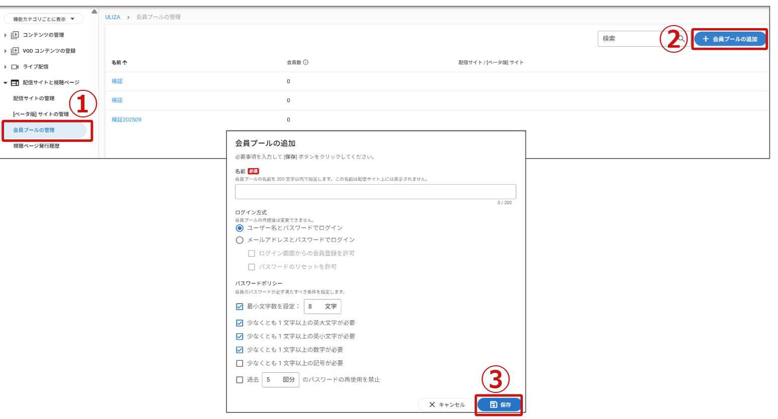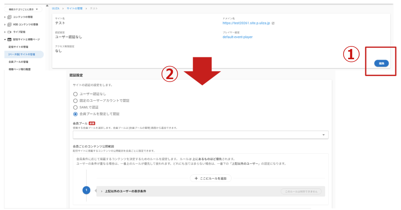 ※配信サイトの公開範囲を会員プールに制限する方法はこちらをご確認ください。