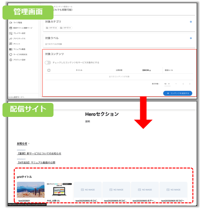 これにより、コンテンツ未設定時でもサイト上にコンテンツが表示されるため、初期設定時や設定漏れがあった場合でも、視聴者に対してスムーズにコンテンツを提供できるようになります。